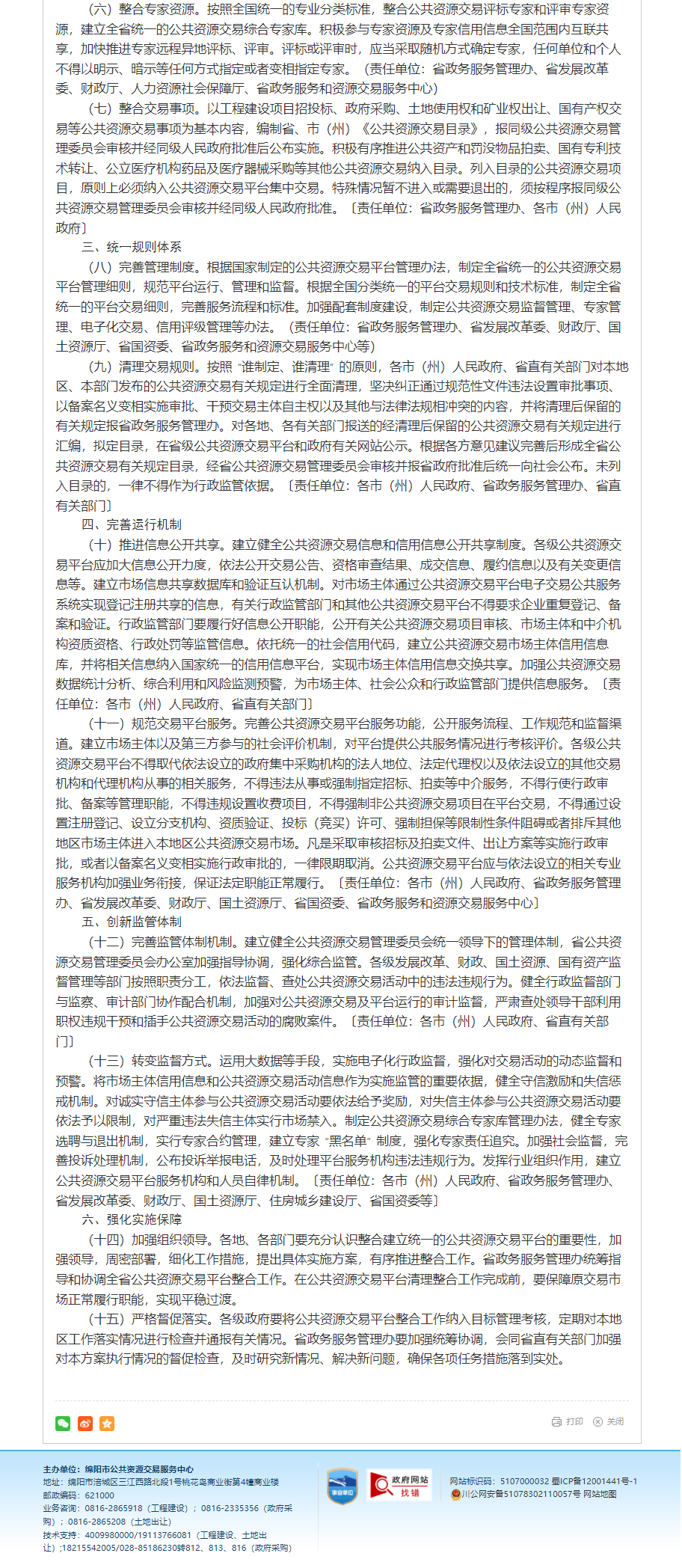 四川省人民政府辦公廳關(guān)于印發(fā)《四川省整合建立統(tǒng)一的公共資源交易平臺(tái)實(shí)施方案》的通知(川辦發(fā)〔2015〕109號(hào))